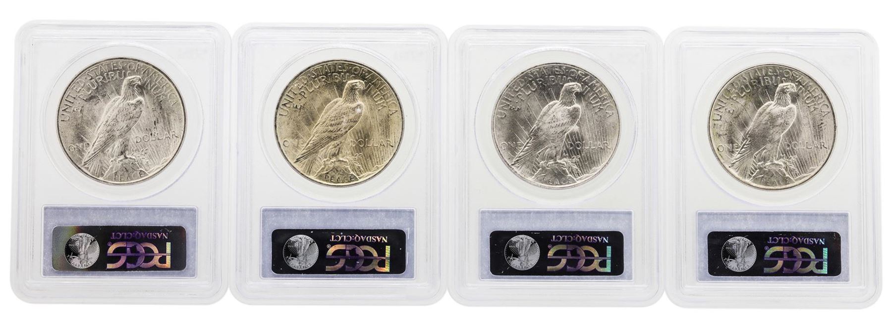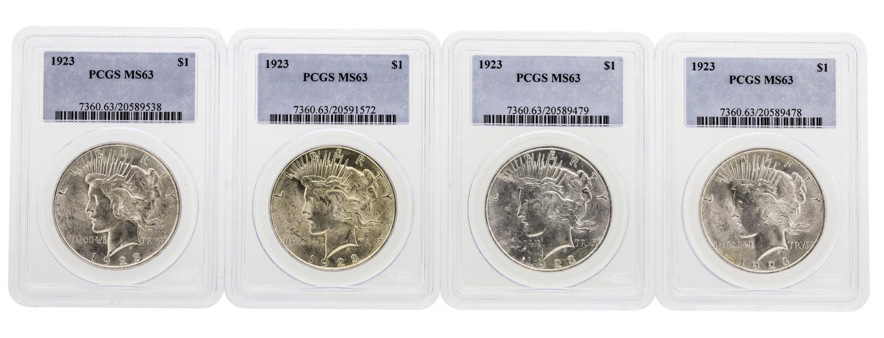 One Lot of (4) 1923 $1 Peace Silver Dollar Coins PCGS MS63. PCGS Graded.