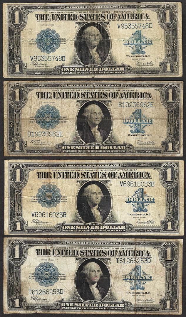 One Lot of (4) 1923 $1 Silver Certificate Notes.
