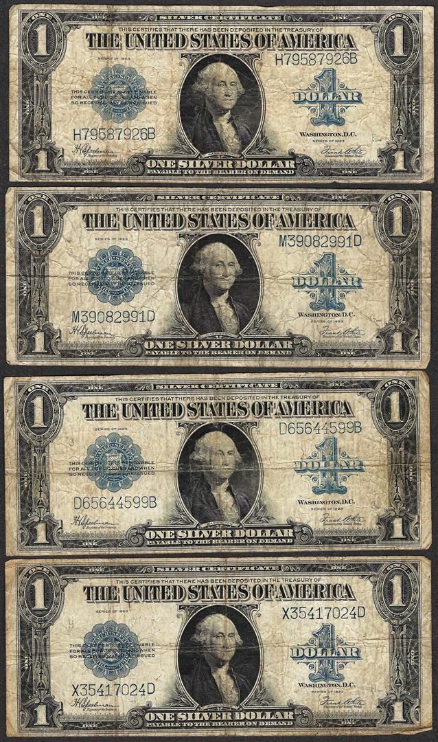 One Lot of (4) 1923 $1 Silver Certificate Notes.