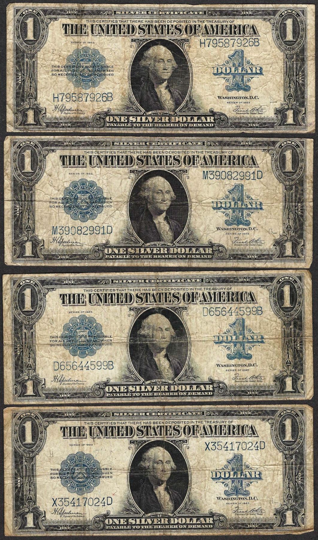 One Lot of (4) 1923 $1 Silver Certificate Notes.