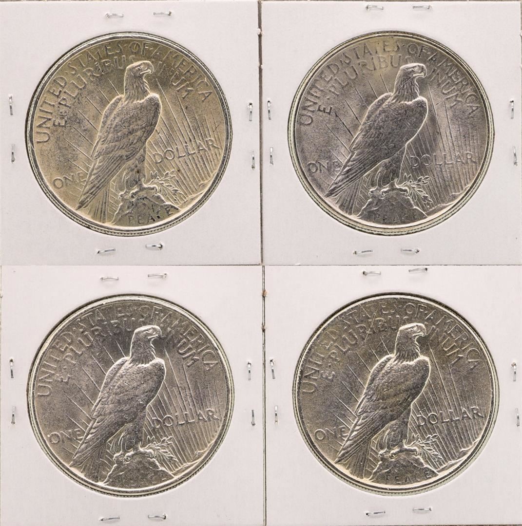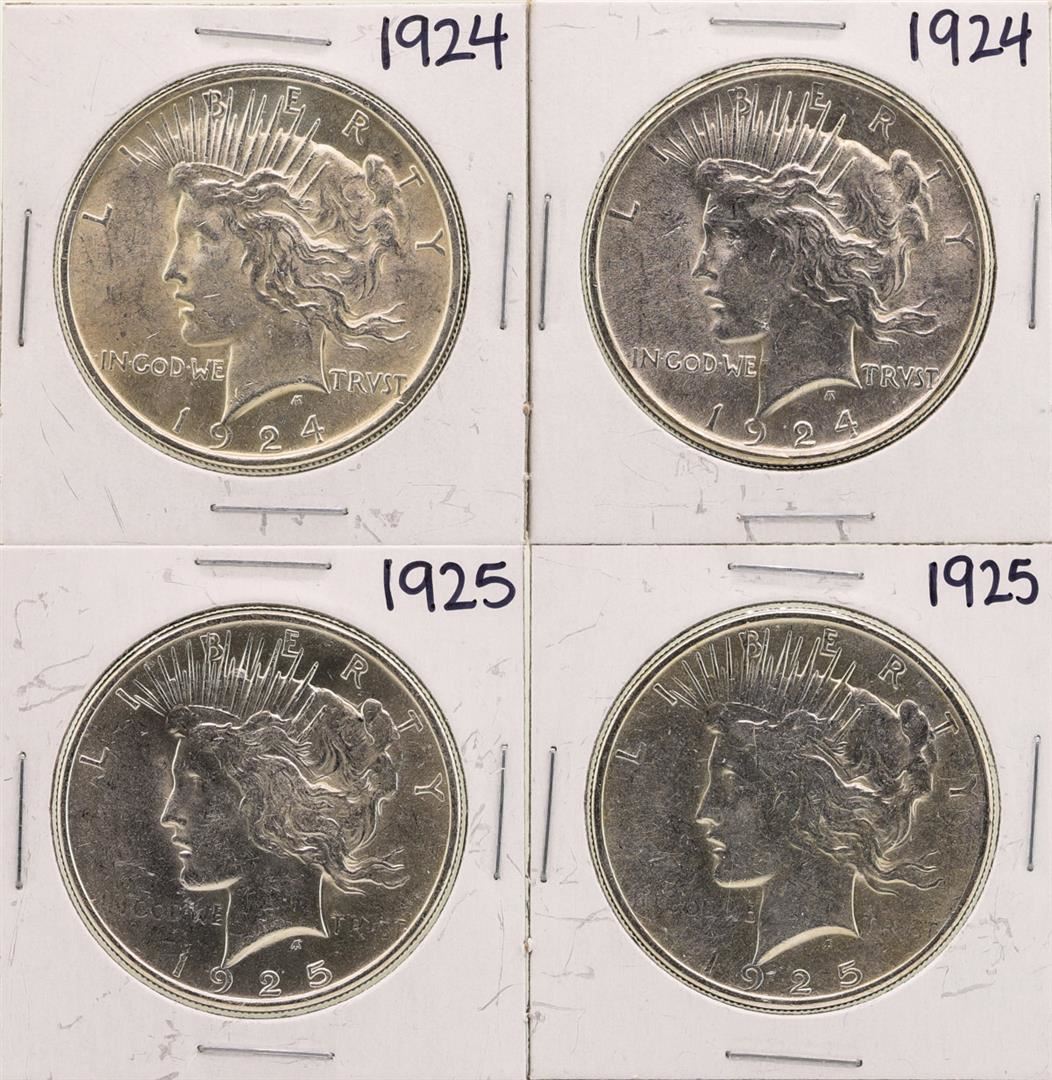 One Lot of (2) 1924 & (2) 1925 $1 Peace Silver Dollar Coins.