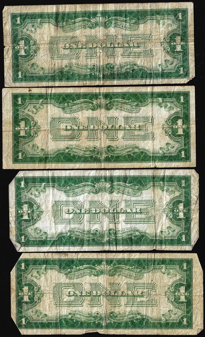 One Lot of (4) 1928/1928A $1 Funnyback Silver Certificate Notes.