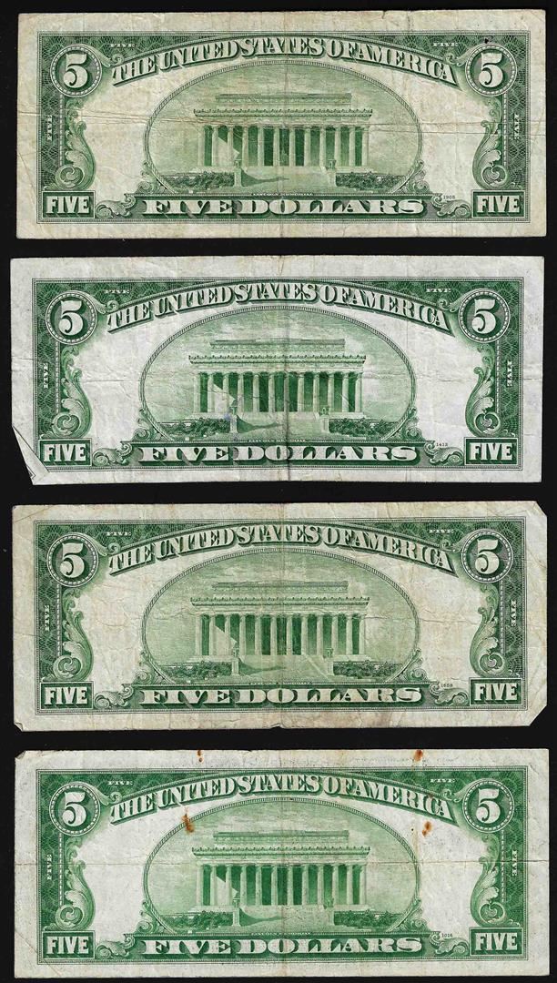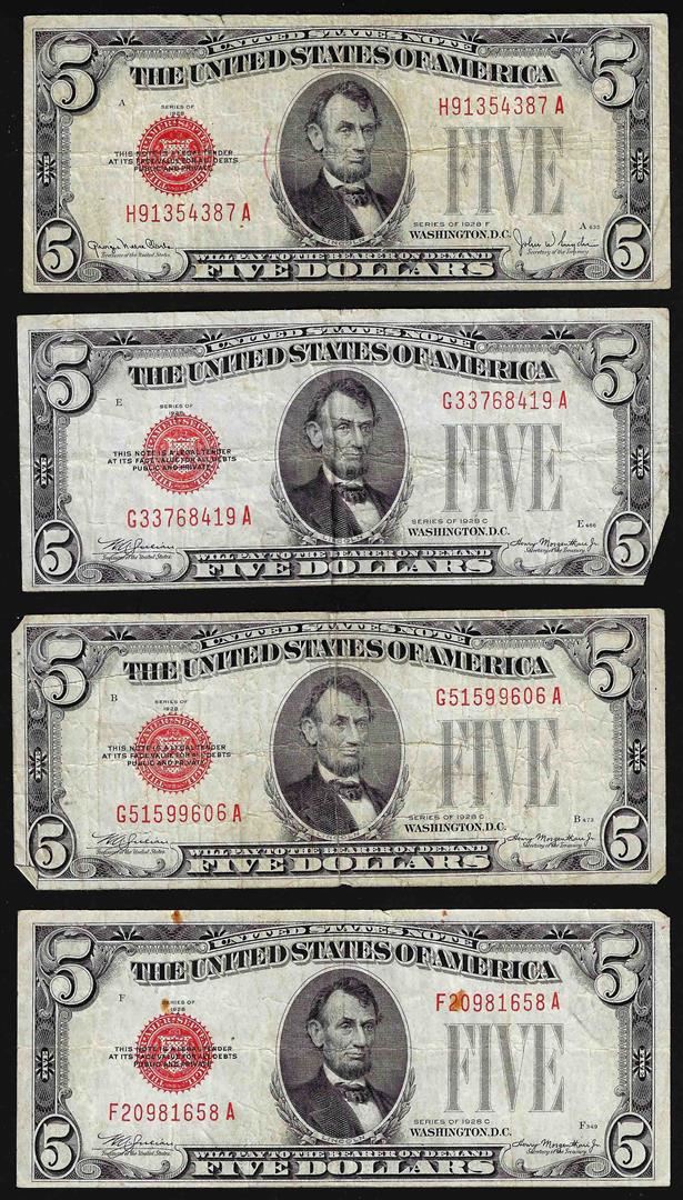 One Lot of (4) 1928 $5 Legal Tender Notes.