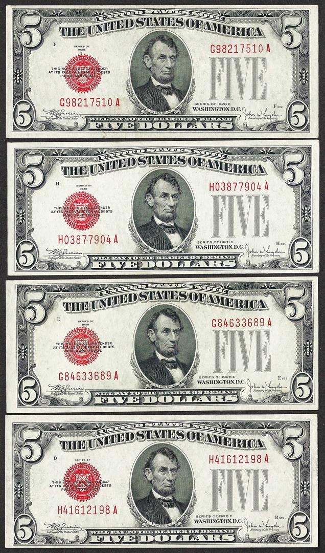 One Lot of (4) 1928E $5 Legal Tender Notes.