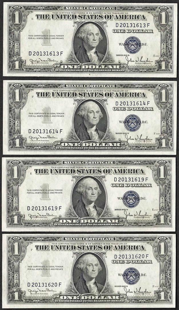 One Lot of (4) 1935D $1 Silver Certificate Notes.