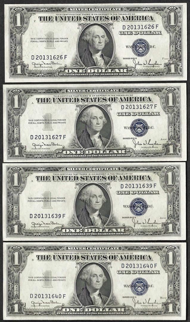 One Lot of (4) 1935D $1 Silver Certificate Notes.