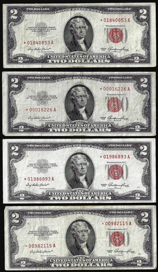 One Lot of (4) 1953 $2 Legal Tender STAR Notes.
