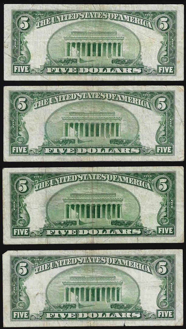 One Lot of (4) 1953 $5 Silver Certificate Notes.