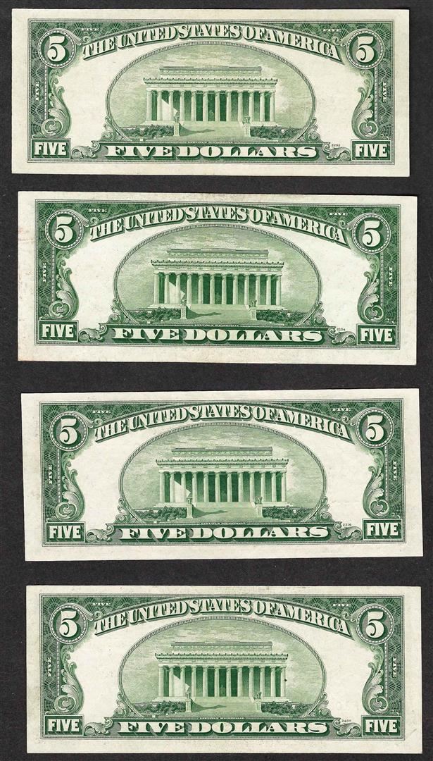 One Lot of (4) 1953 $5 Silver Certificate Notes.