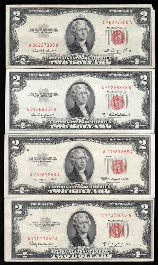 One Lot of (4) 1953/A/B/C $2 Legal Tender Notes.