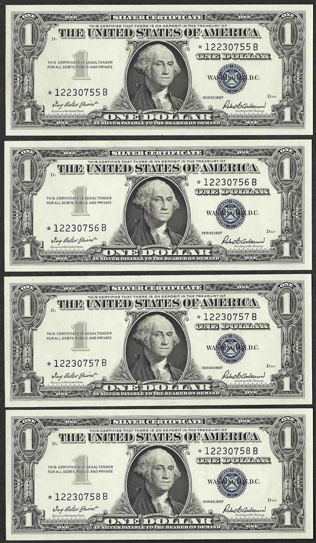 One Lot of (4) 1957 $1 Silver Certificate STAR Notes.