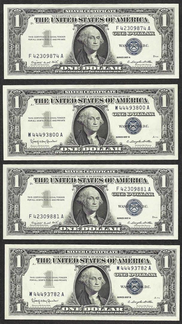 One Lot of (4) 1957A/1957B $1 Silver Certificate Notes.