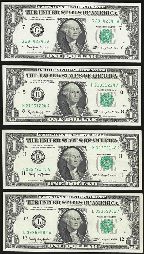 One Lot of (4) 1963 $1 Federal Reserve Notes.