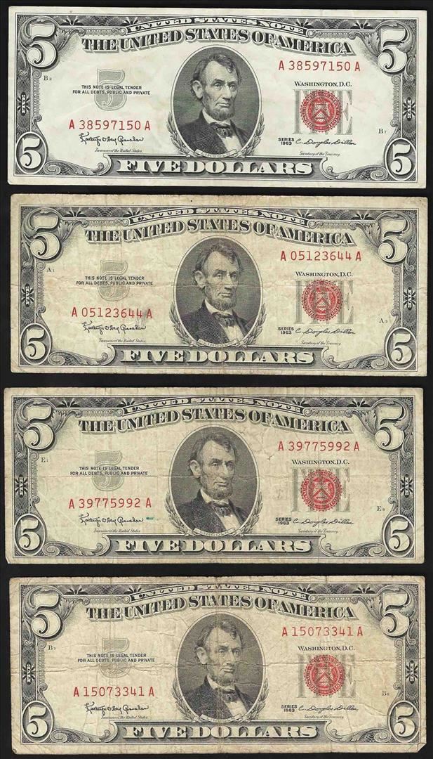One Lot of (4) 1963 $5 Legal Tender Notes.