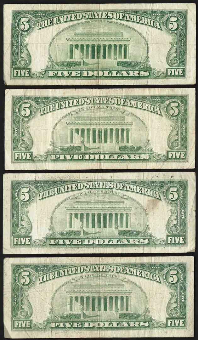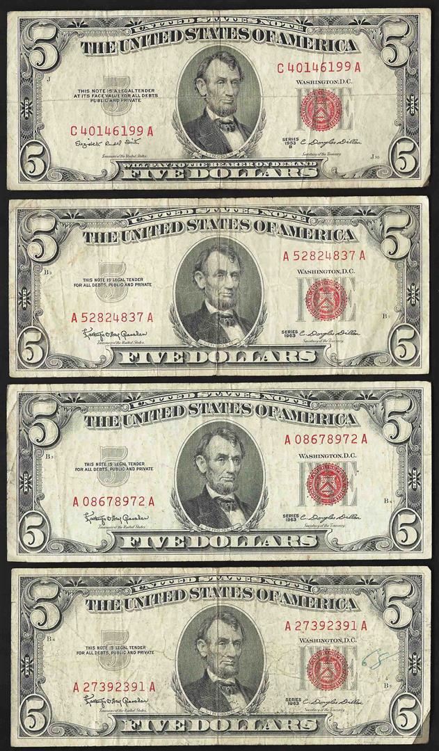 One Lot of (4) 1963 $5 Legal Tender Notes.