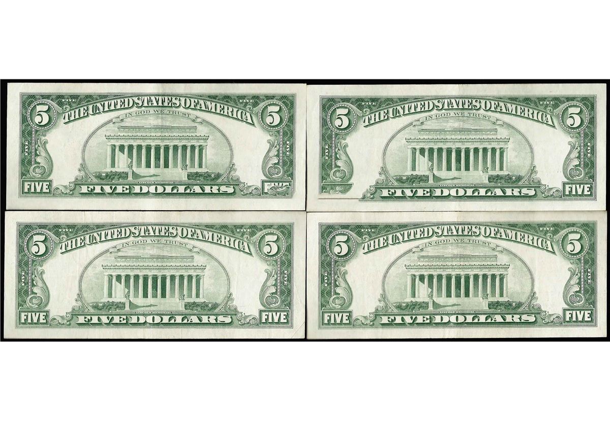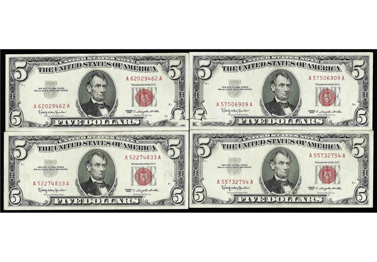 One Lot of (4) 1963 $5 Red Seal Legal Tender Notes.