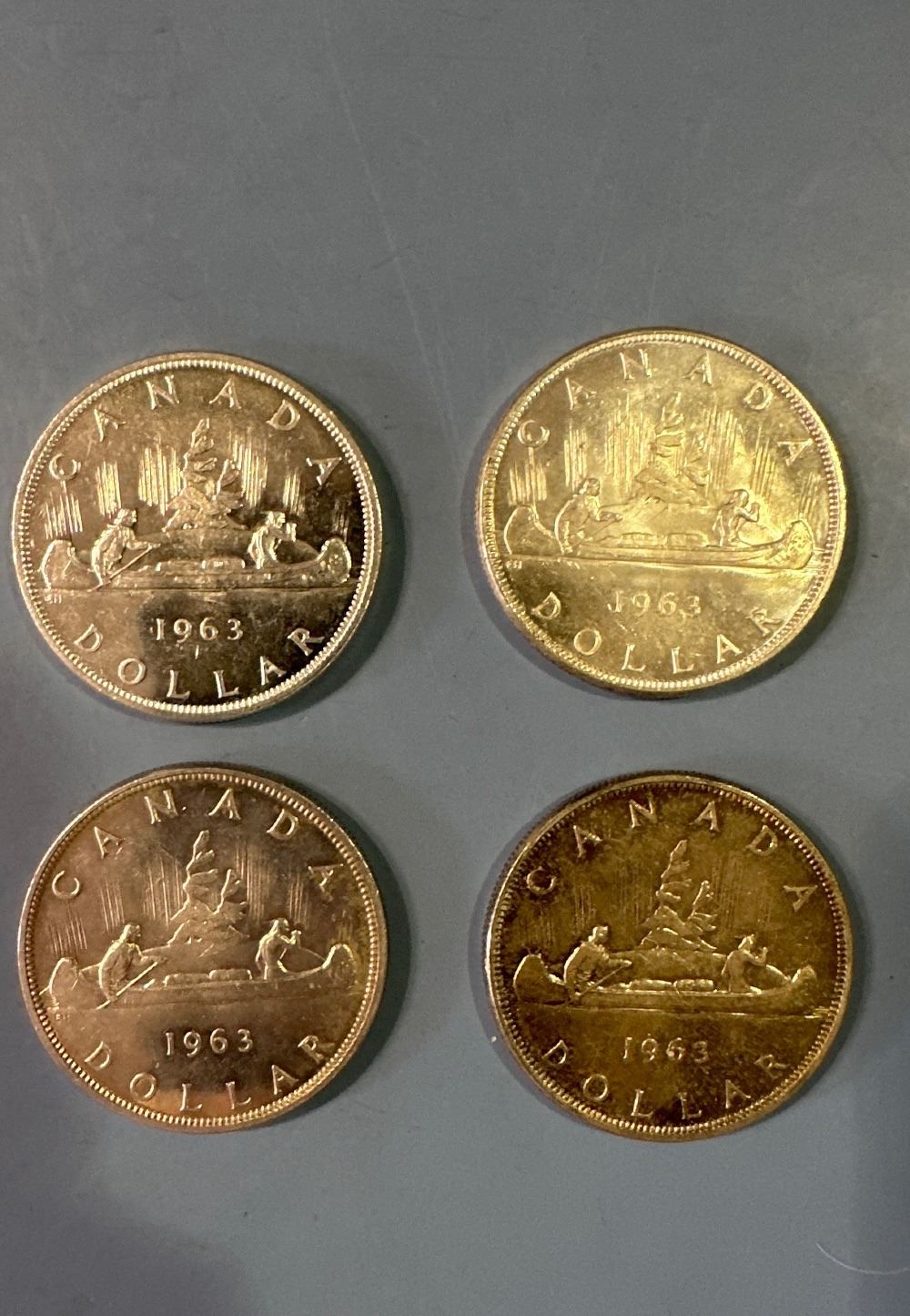 Lot of 4 - 1963 Canada Silver Dollar AU +
