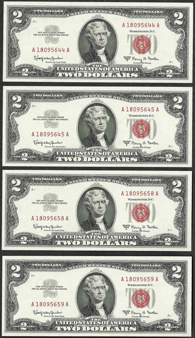 One Lot of (4) 1963A $2 Legal Tender Notes.