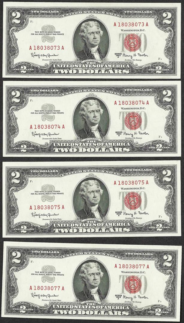 One Lot of (4) 1963A $2 Legal Tender Notes.