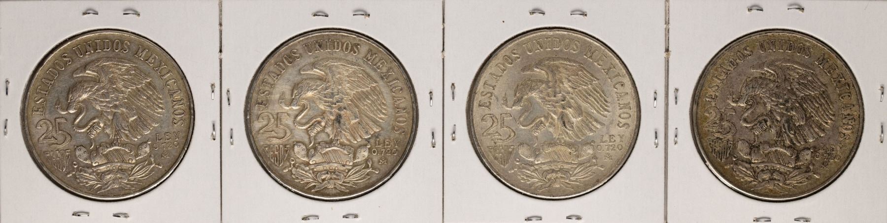 One Lot of (4) 1968 Mexico 25 Pesos Olympics Commemorative Coins.