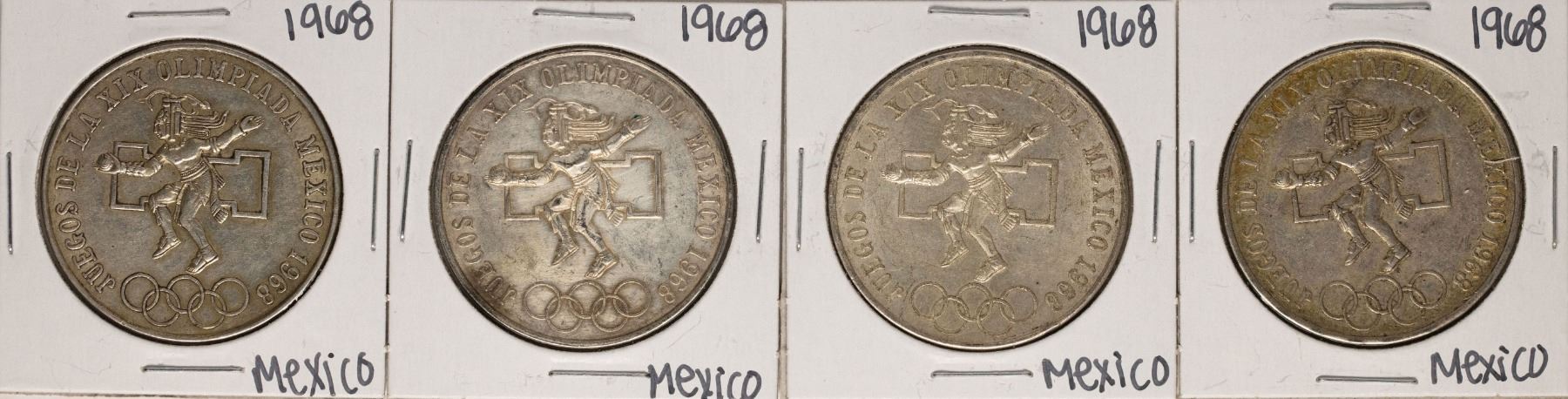One Lot of (4) 1968 Mexico 25 Pesos Olympics Commemorative Coins.