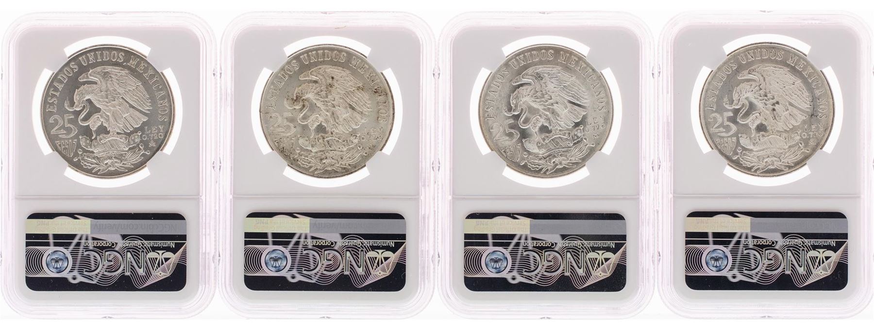Lot of (4) 1968Mo Mexico 25 Pesos Olympics Commemorative Silver Coins NGC MS65