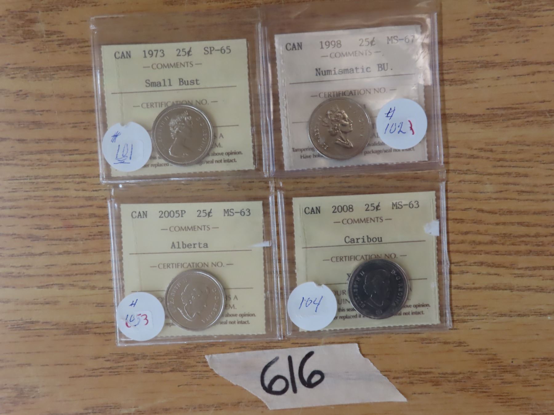 Lot of 4 (1973, 1998, 2005P and 2008) canadian graded quarters