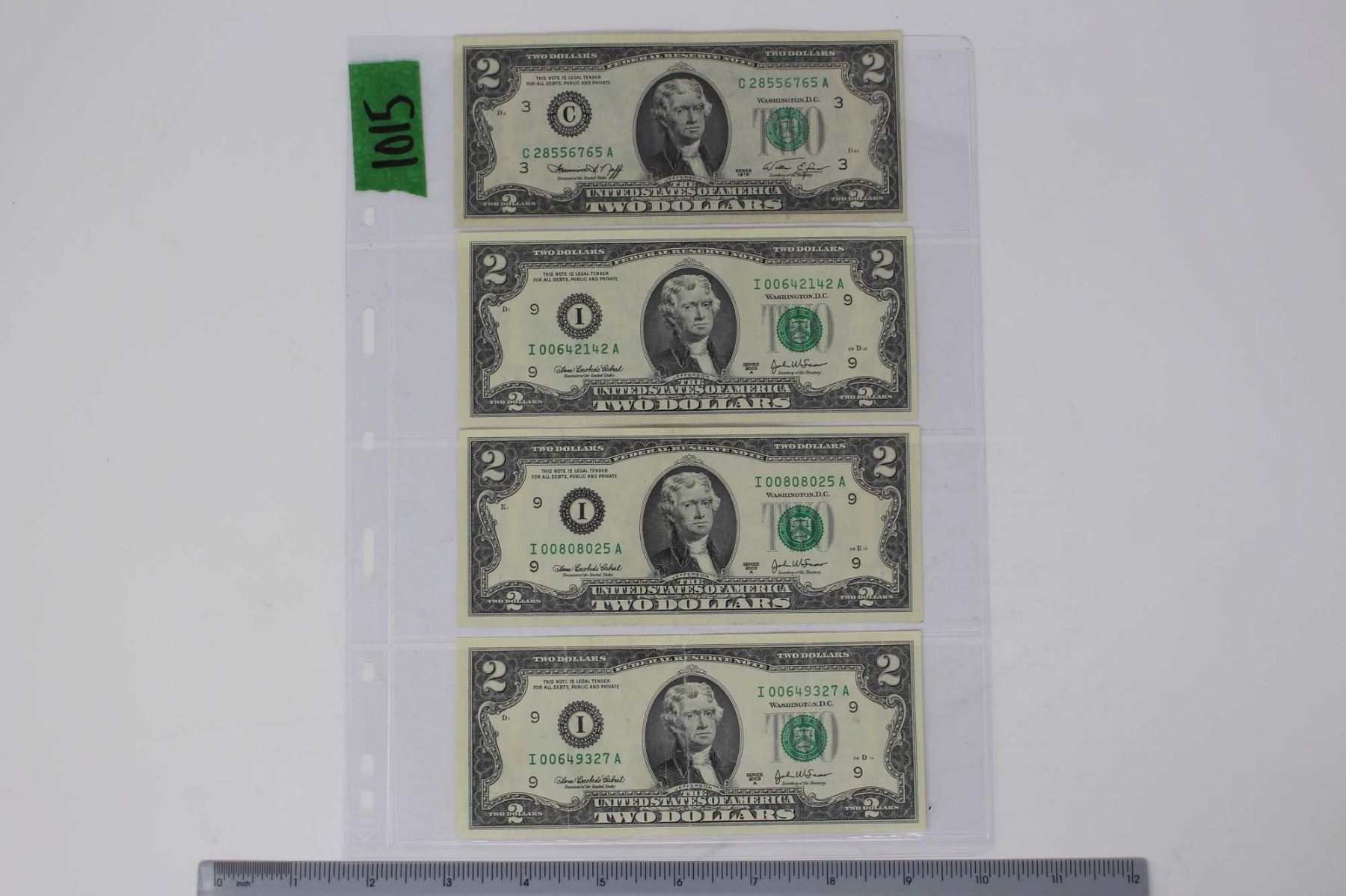 Lot of 4 1976 & 2003 A - 2 Dollar American Bank Notes