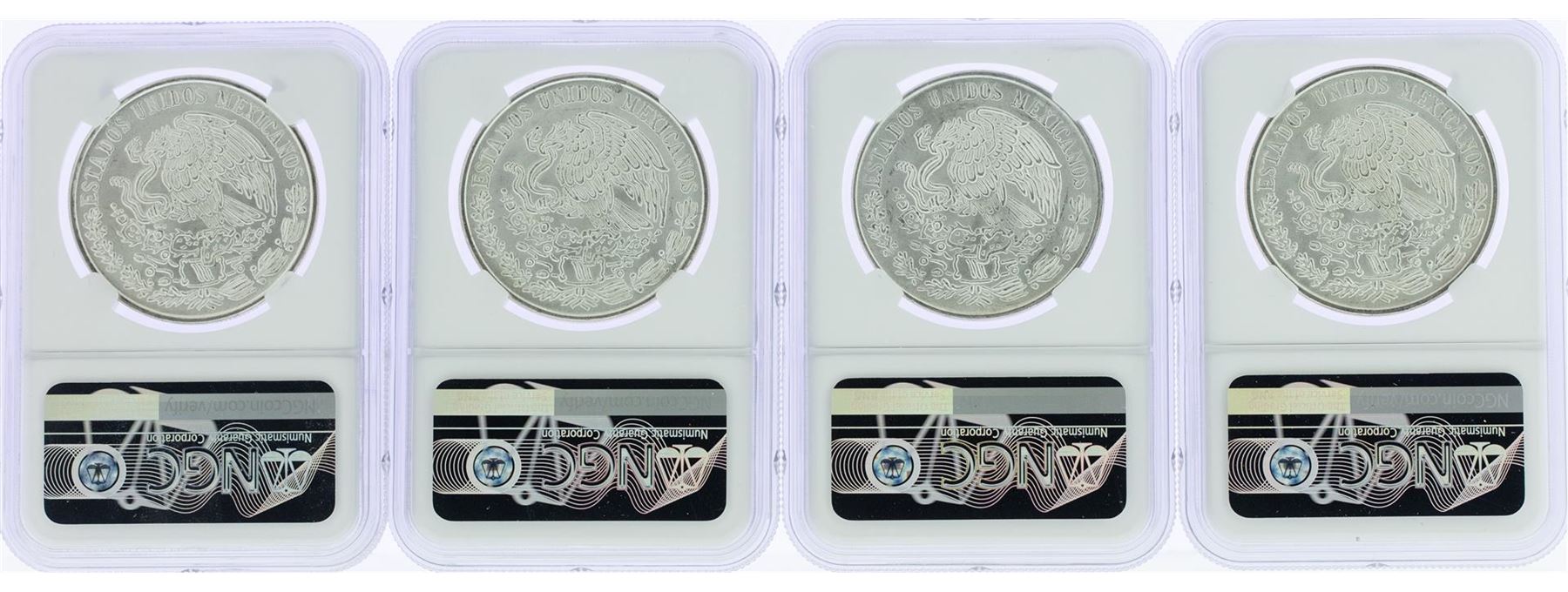 One Lot of (4) 1978Mo Mexico 100 Pesos Silver Coins NGC MS65. NGC Certified.
