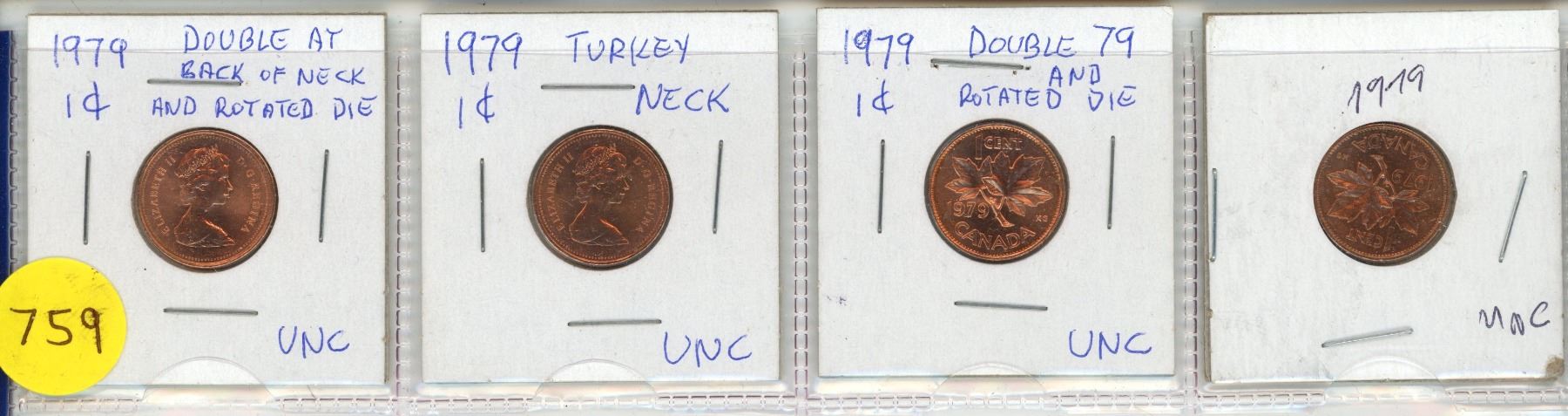 Lot of 4 1979 Canadian Pennies With Various Defects