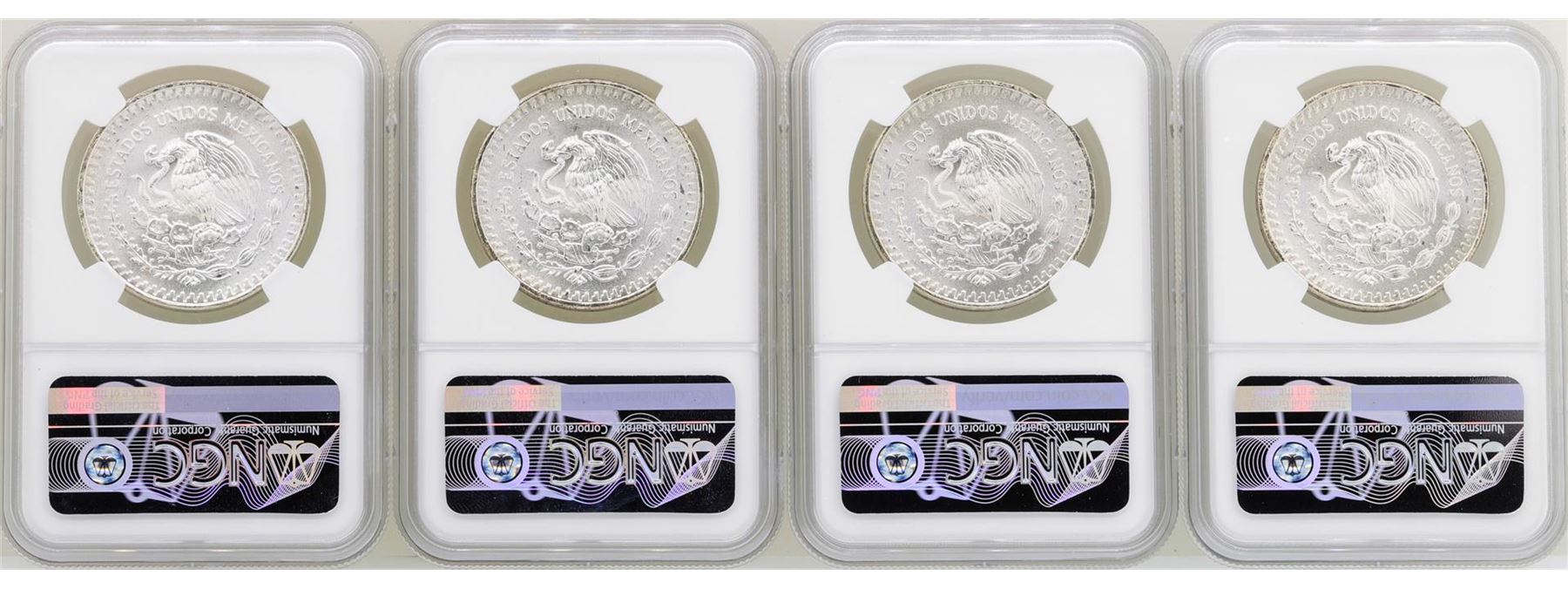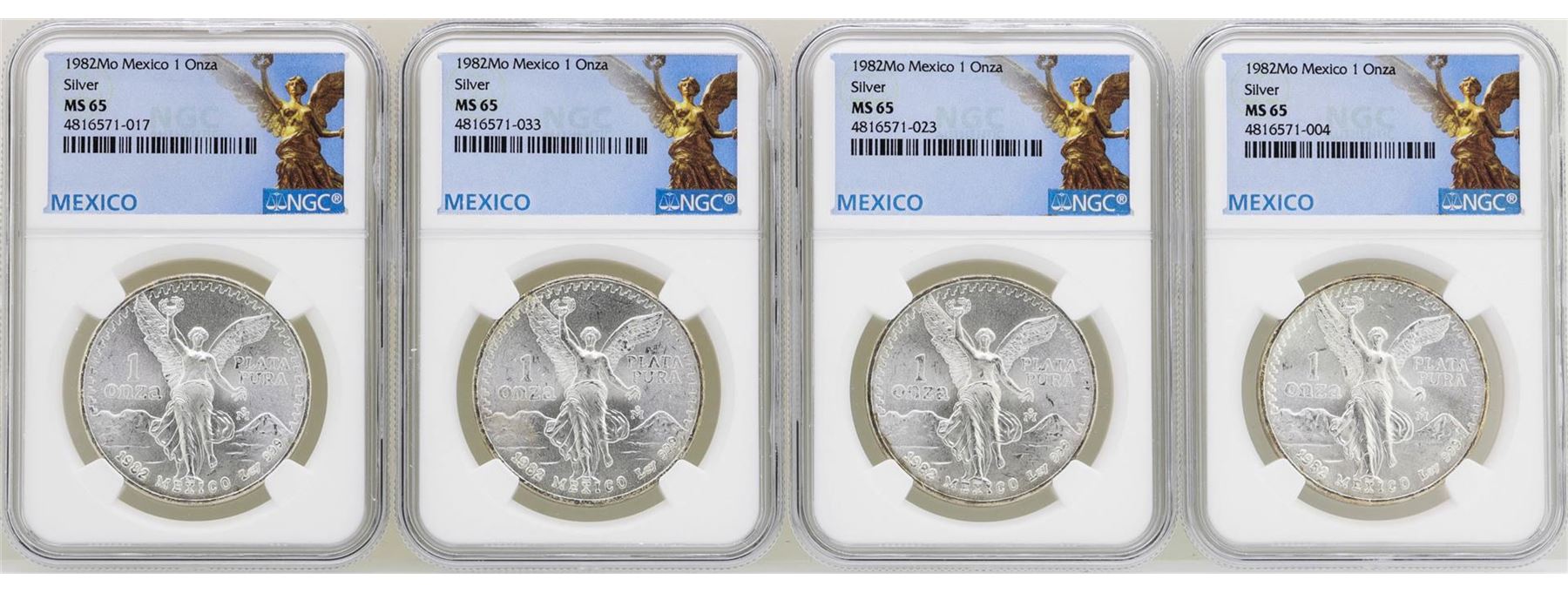 One Lot of (4) 1982Mo Mexico Libertad Onza Silver Coins NGC MS65. NGC Certified.