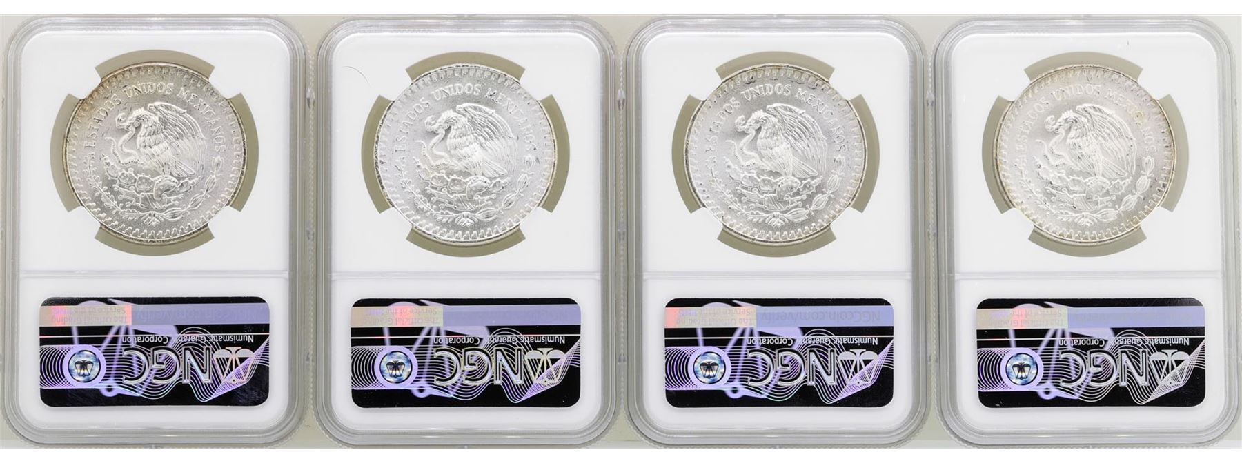 One Lot of (4) 1982Mo Mexico Libertad Onza Silver Coins NGC MS65. NGC Certified.