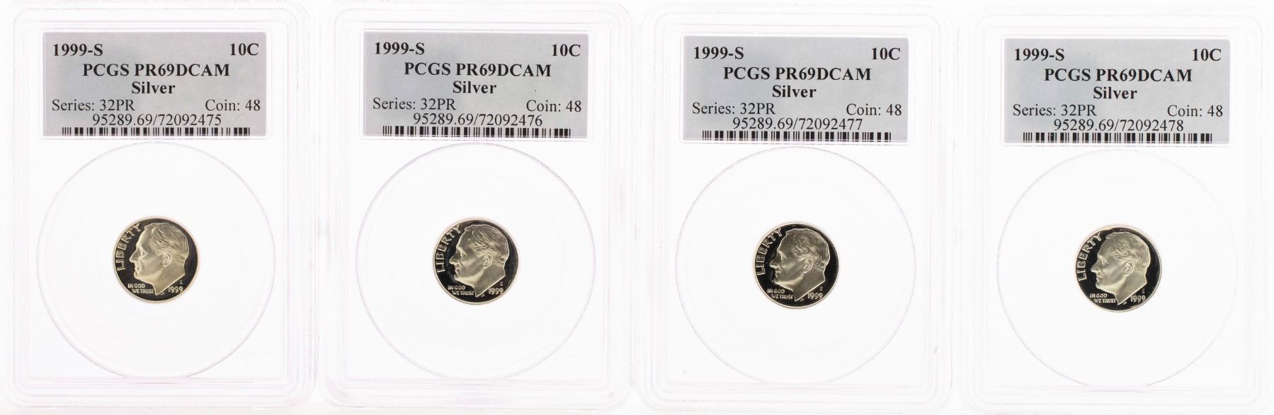 Lot of (4) 1999-S Proof Silver Roosevelt Dime Coins PCGS PR69DCAM