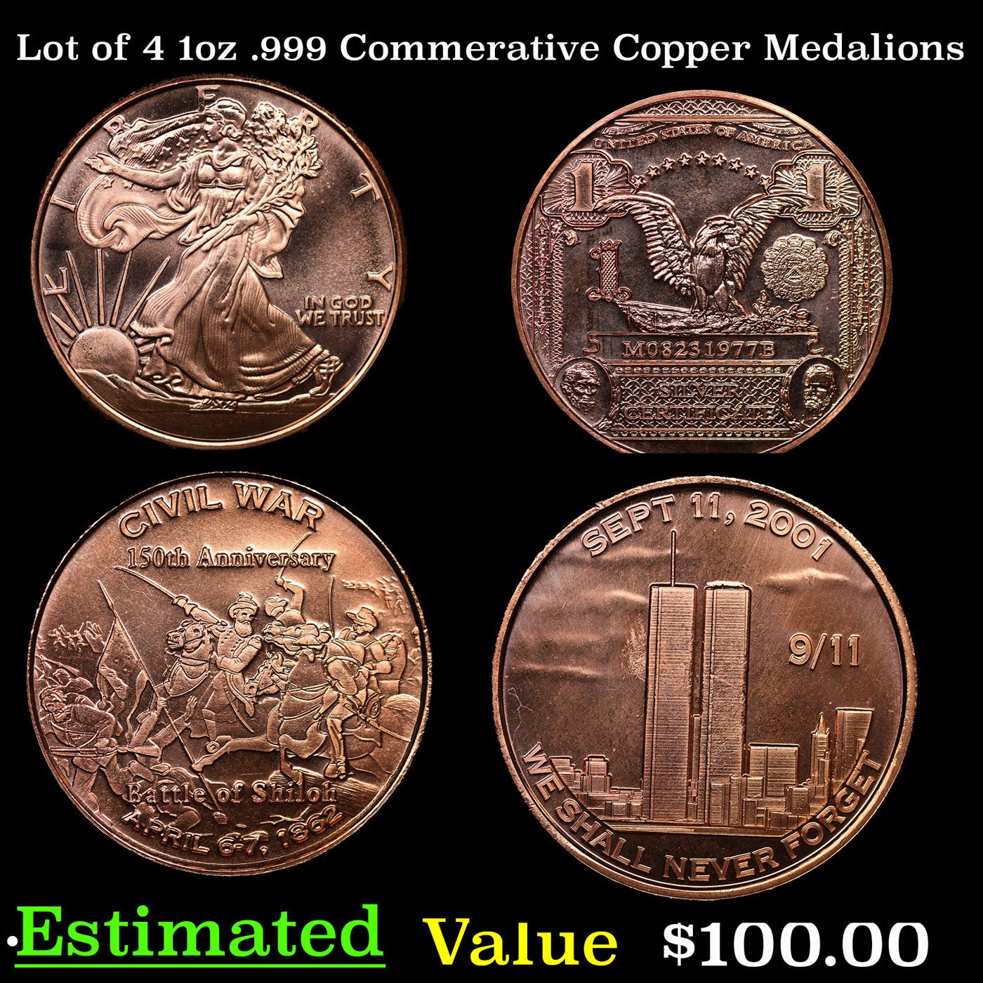 Lot of 4 1oz .999 Commerative Copper Medalions.