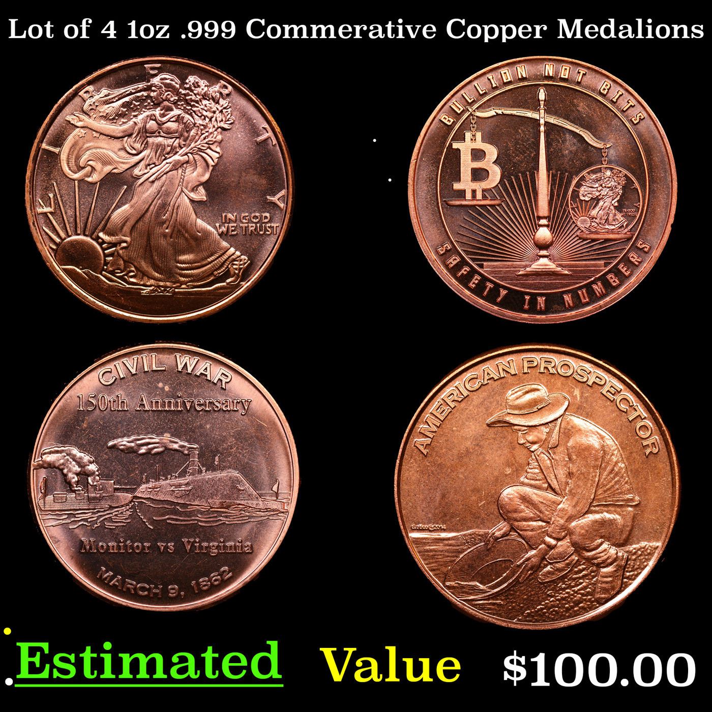 Lot of 4 1oz .999 Commerative Copper Medalions.