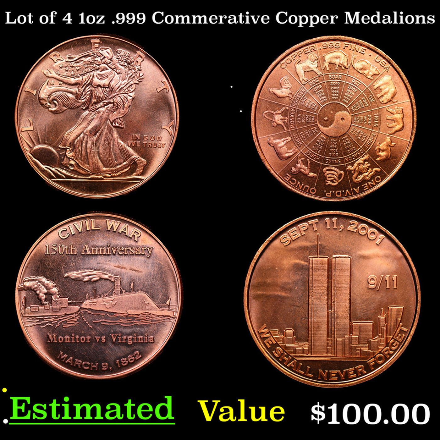 Lot of 4 1oz .999 Commerative Copper Medalions.
