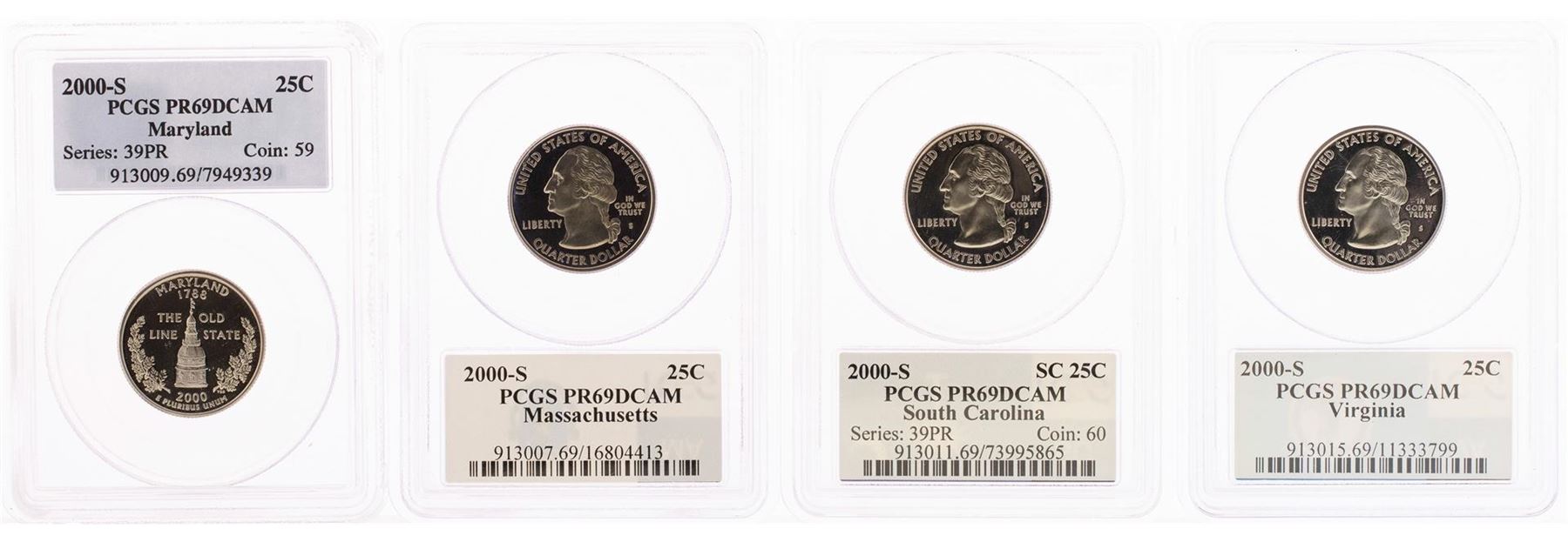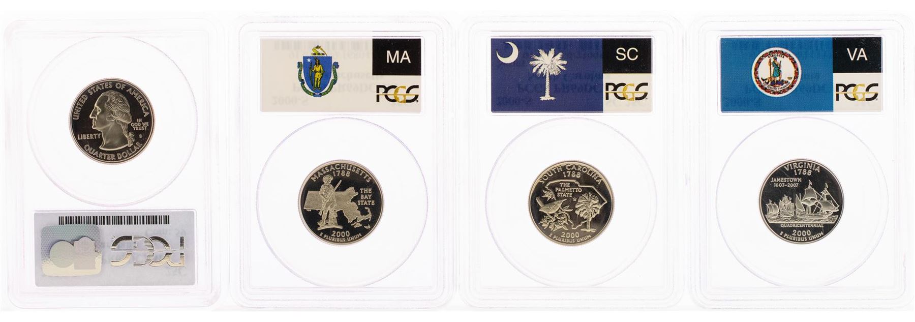 One Lot of (4) 2000-S Proof State Quarter Coins PCGS PR69DCAM. PCGS Graded.