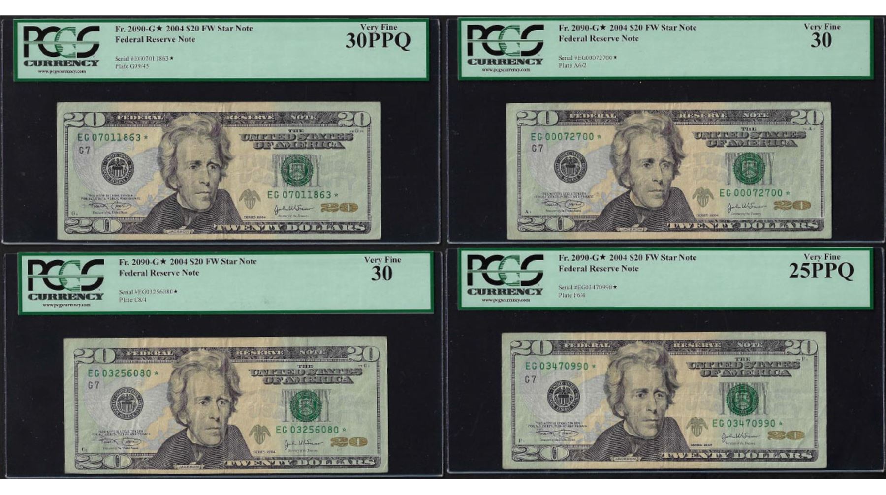 One Lot of (4) 2004 $20 Federal Reserve STAR Notes Fr.2090-G* PCGS Graded. PCGS Graded.