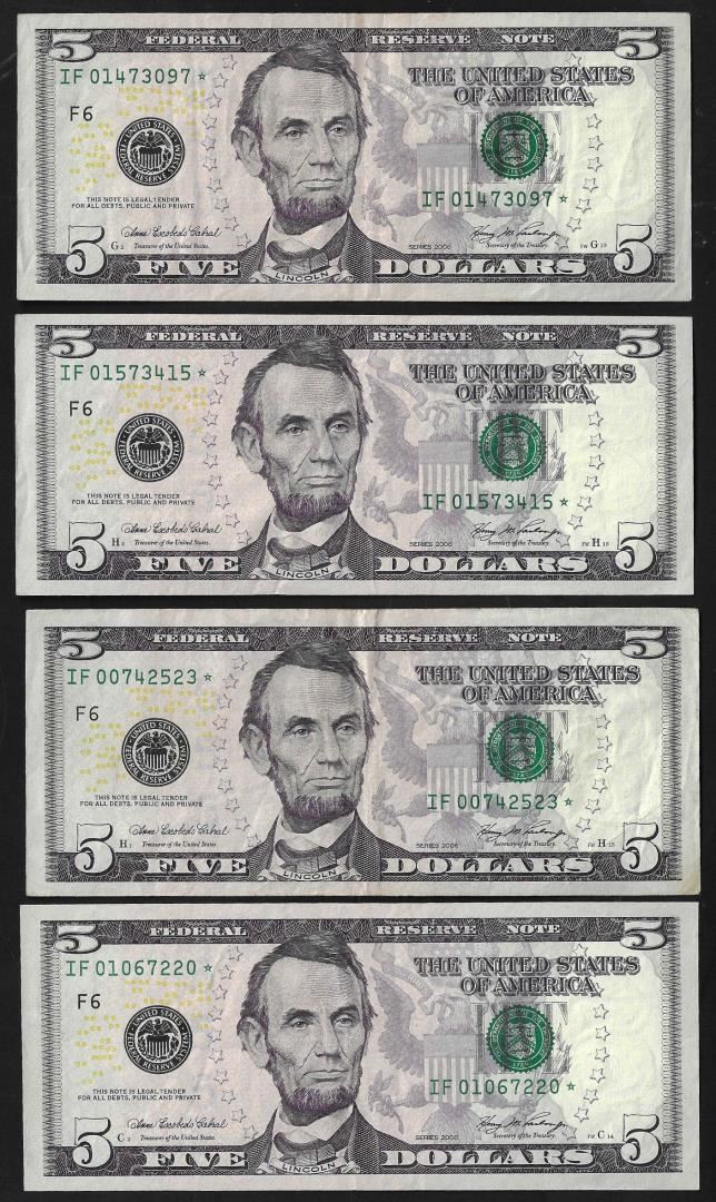 One Lot of (4) 2006 $5 Federal Reserve Star Notes.