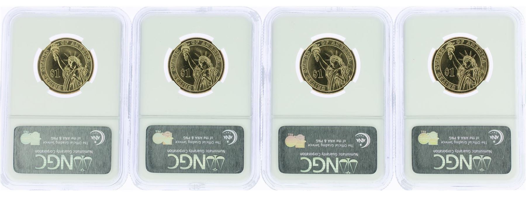 One Lot of (4) 2007-P George Washington Presidential Dollar Coins NGC MS65 FDOI. NGC Certified.