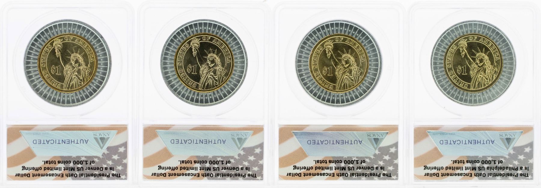 One Lot of (4) 2008 Presidential Oath Dollar Coins ANACS MS66.