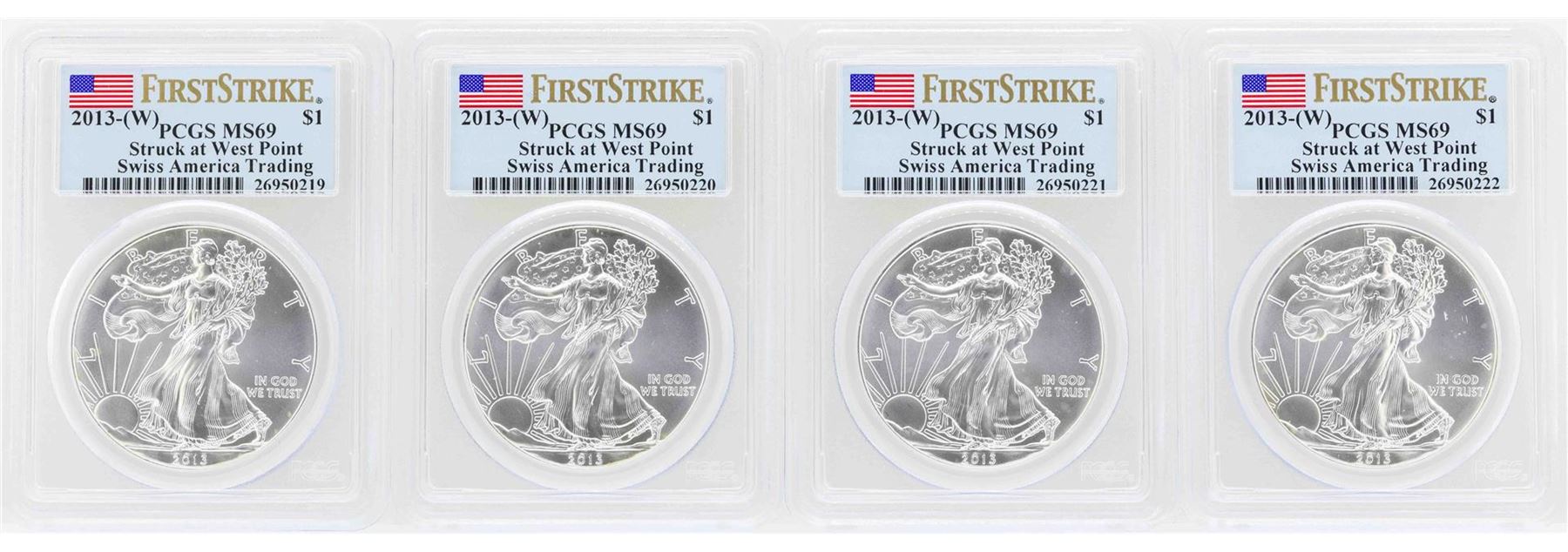 One Lot of (4) 2013-W $1 American Silver Eagle Coins PCGS MS69 First Strike. PCGS Graded.
