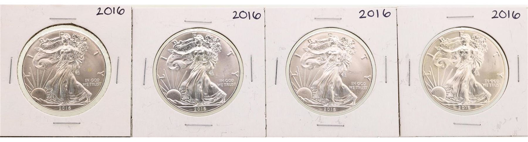 One Lot of (4) 2016 $1 American Silver Eagle Coins.