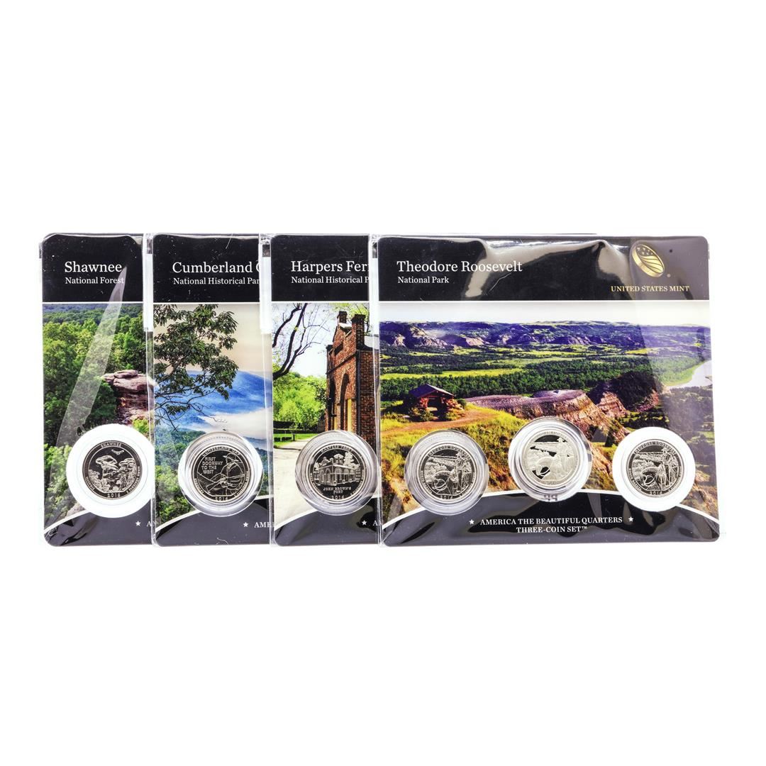 Lot of (4) 2016 America The Beautiful Three-Coin Quarter Sets