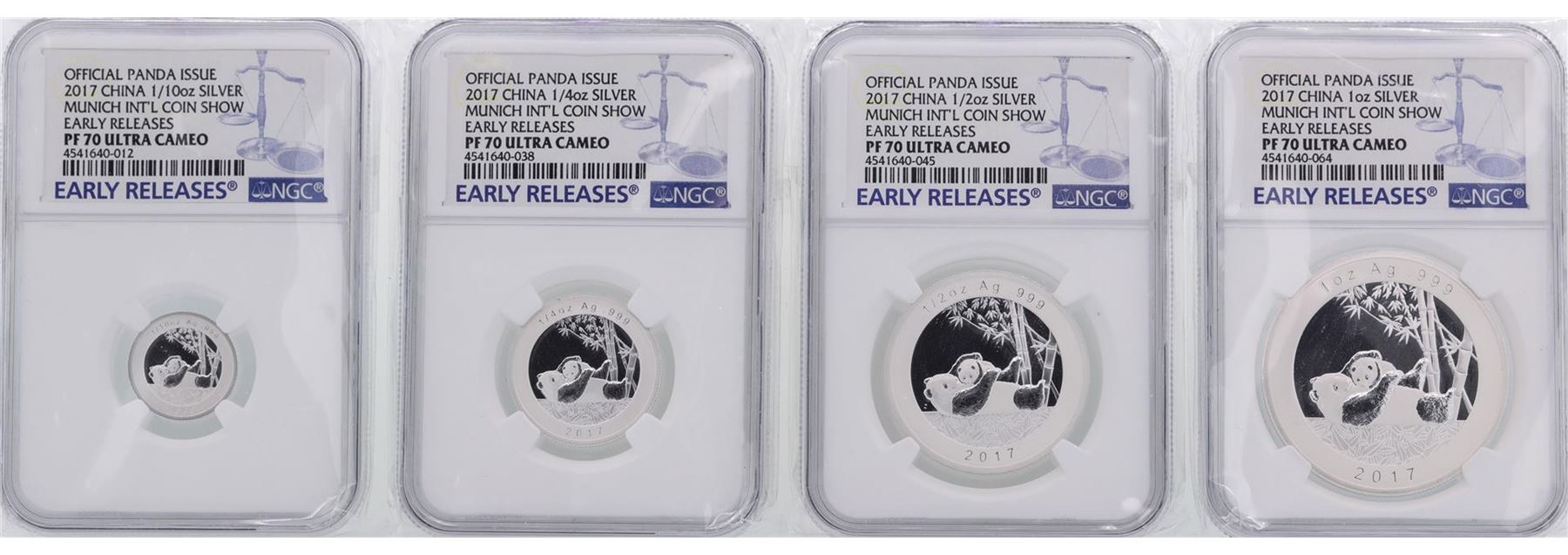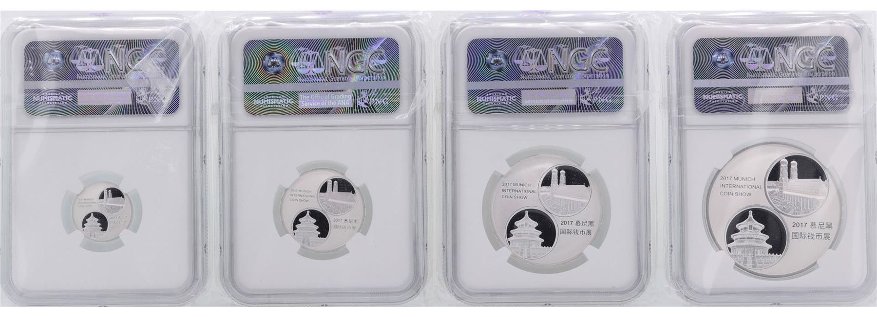 One Lot of (4) 2017 China Panda Issue Munich Silver Set NGC PF70 Ultra Cameo. NGC Certified.