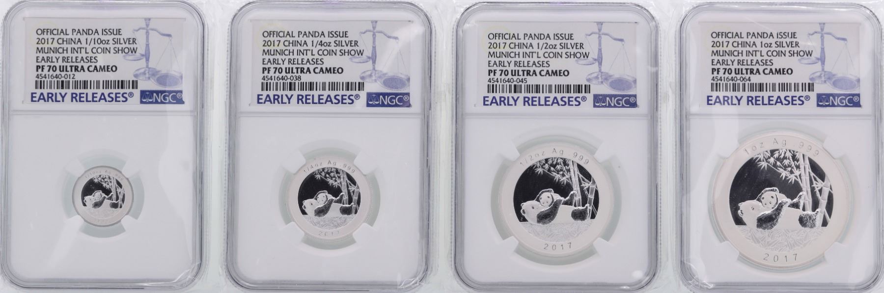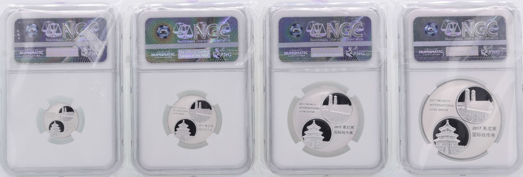 One Lot of (4) 2017 China Panda Issue Munich Silver Set NGC PF70 Ultra Cameo.