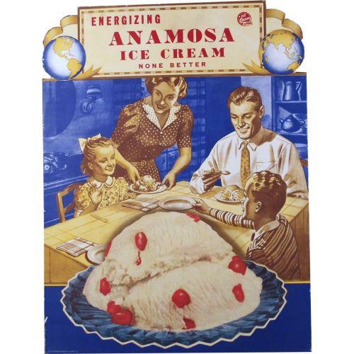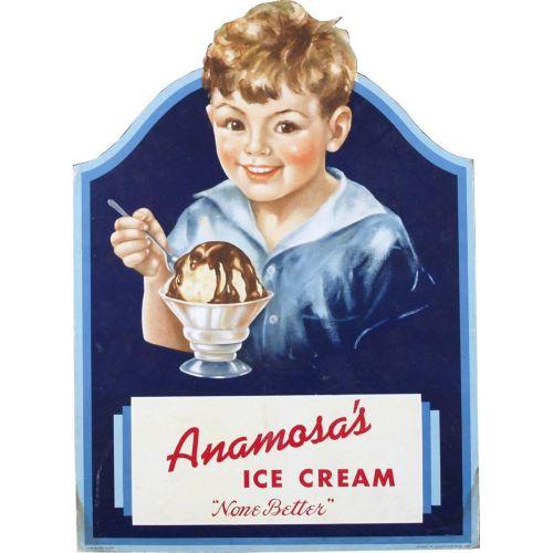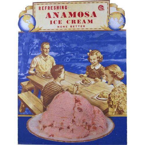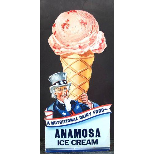 Lot of 4 Anamosa Ice Cream Die Cut Easel Back Signs 2 are 19 x 25" and