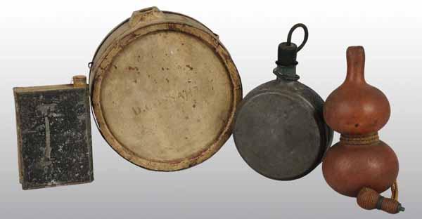 Description Includes one embossed "D. Cossart", one metal, one book shaped canteen, and one possibly for powder. Condition (Excellent). Size Largest: 8" Dia.