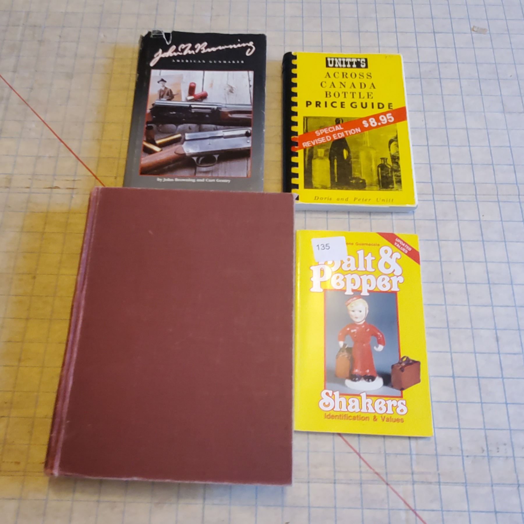 Lot of 4 Assorted books gun maker encyclopedia bottles salt and pepper