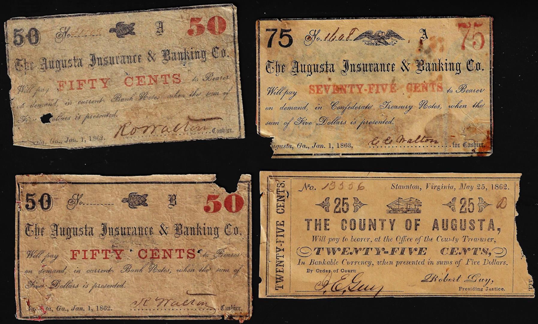 One Lot of (4) Augusta Insurance & Banking Co. Obsolete Notes.